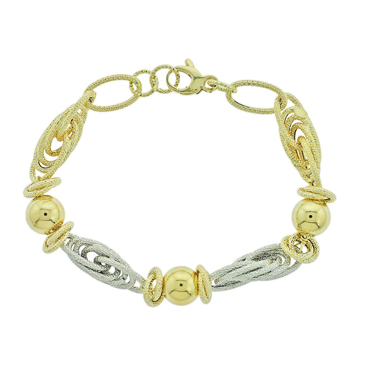 Ένα πολύ όμορφο και άκρως εντυπωσιακό γυναικείο βραχιόλι, δίχρωμο, κατασκευασμένο από  χρυσό και λευκόχρυσο μέταλλο 14 Καρατίων.