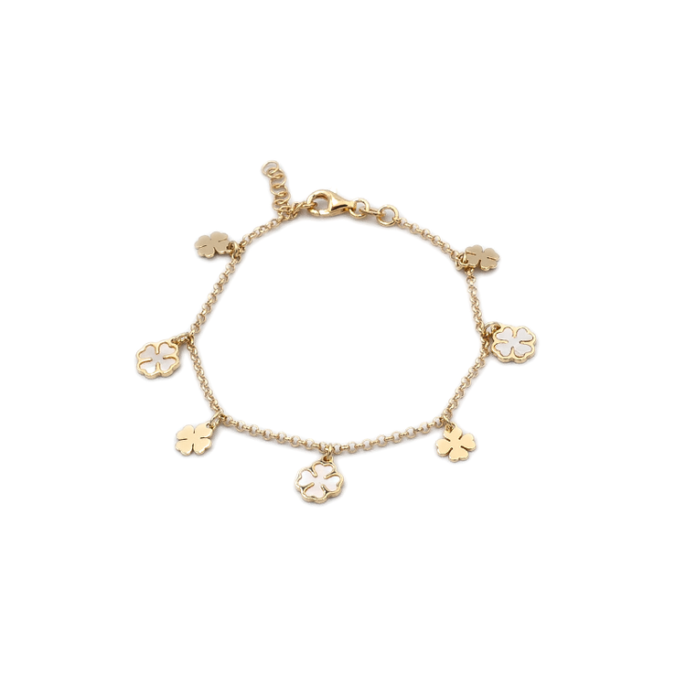 Η επιφάνεια του βραχιολιού είναι λουστρέ. Αποτελείται 7 τετράφυλλα τριφύλλια, τρία εκ των οποίων είναι διακοσμημένα με λευκό σμάλτο