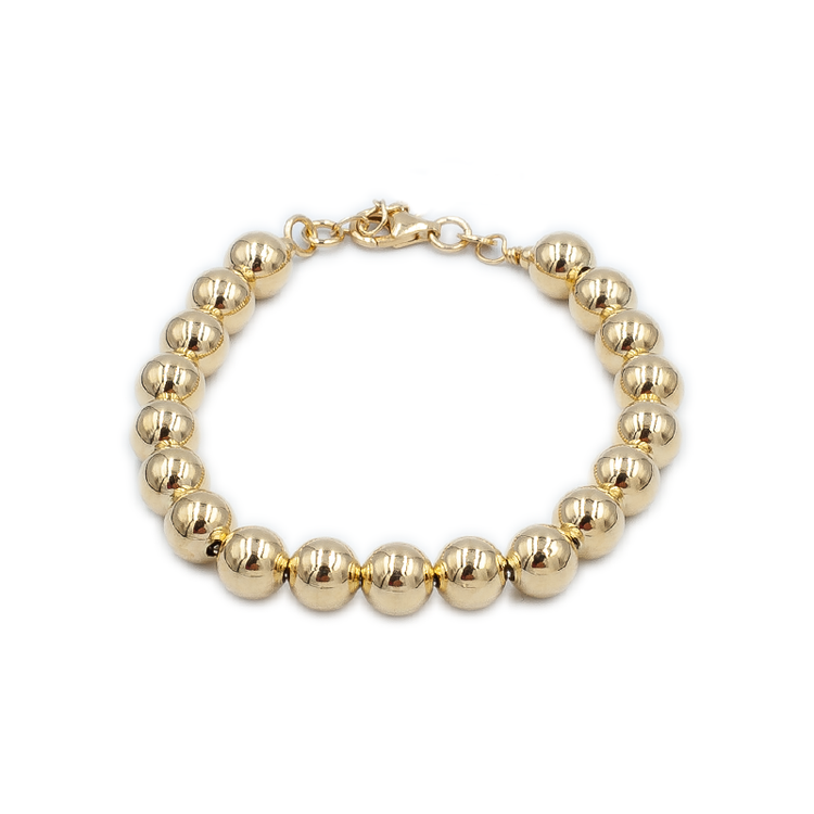 Η επιφάνεια του βραχιολιού είναι λουστρέ και αποτελείται από κατά σειρά μπίλιες σε χρυσό χρώμα. Ένα εντυπωσικό βραχιόλι που θα σας συνοδεύει σε κάθε σας έξοδο.