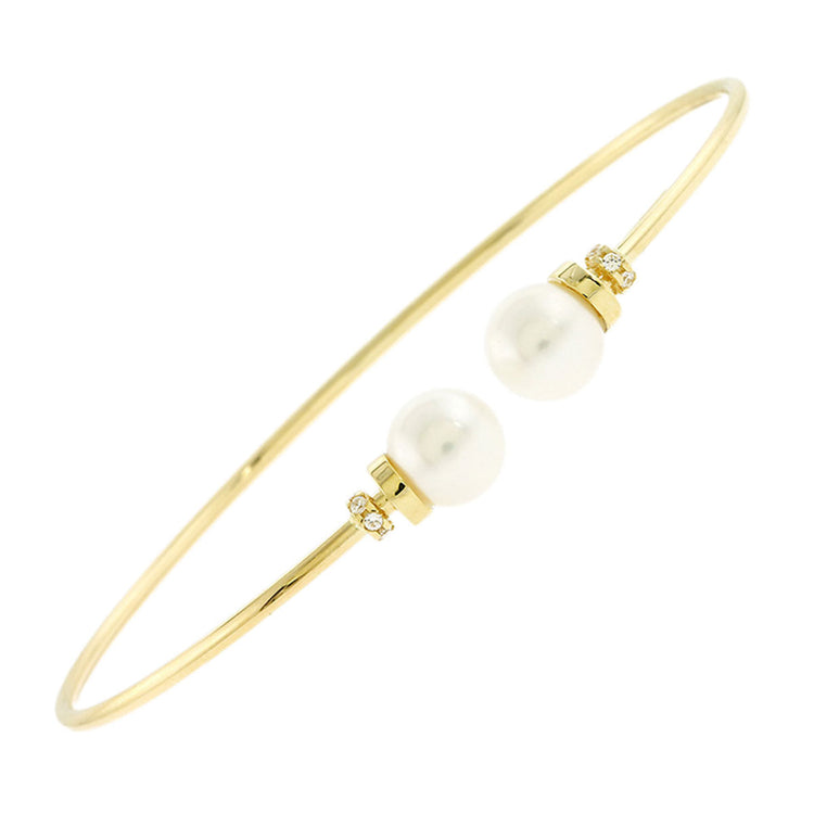 AV χρυσή γυναικεία χειροπέδα με φυσικά μαργαριτάρια και λαμπερές λευκές πέτρες ζιργκόν