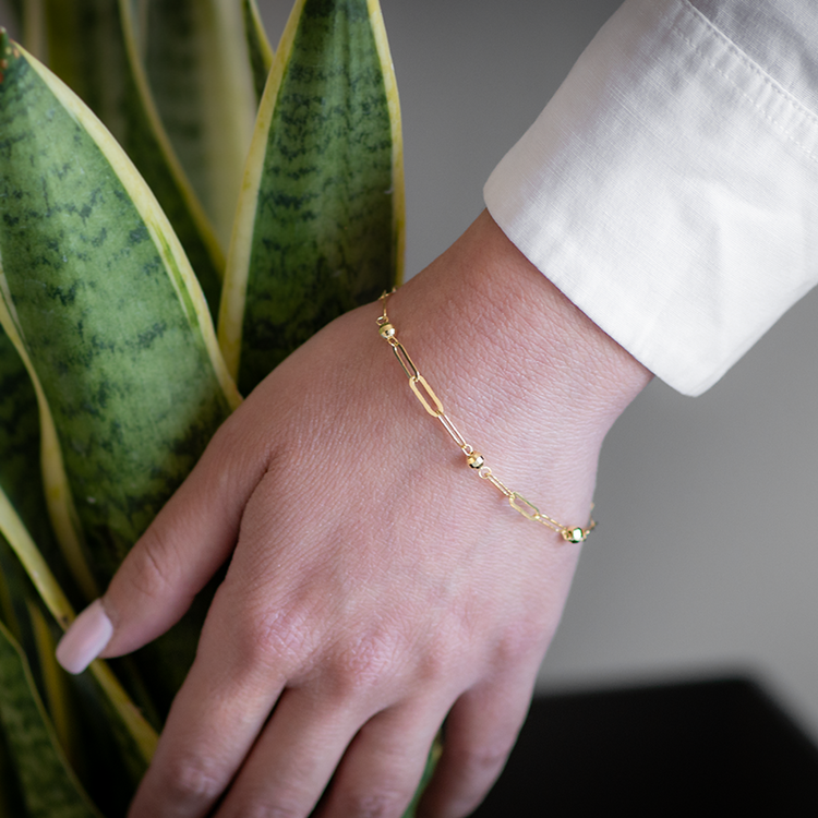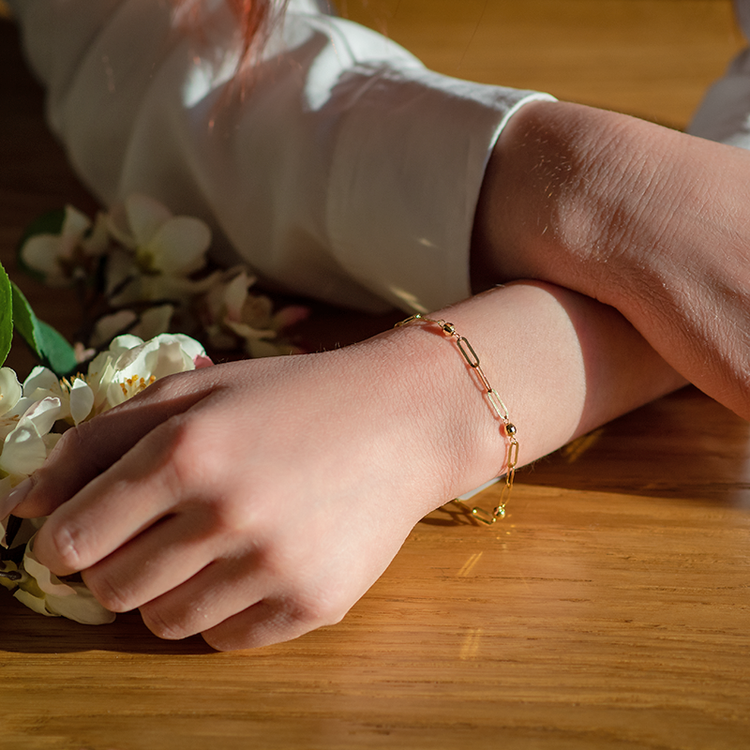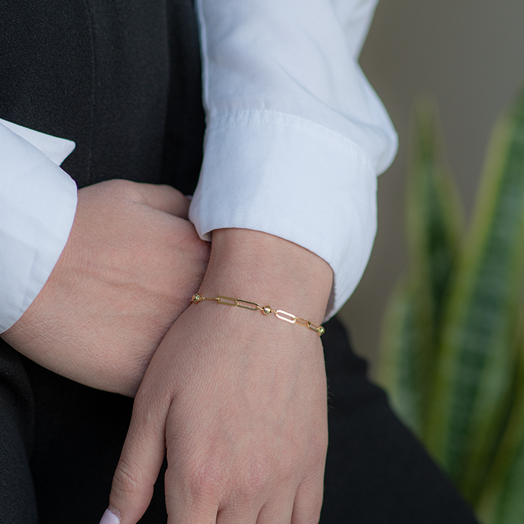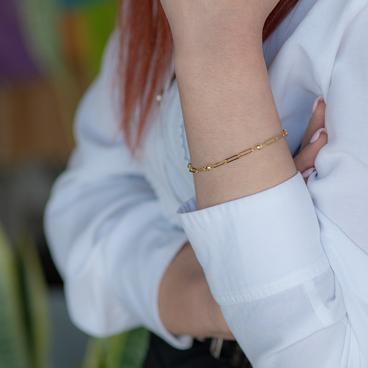 Ένα πανέμορφο και με μοντέρνο ύφος γυναικείο βραχιόλι, κατασκευασμένο από χρυσό μέταλλο 14 Καρατίων.
