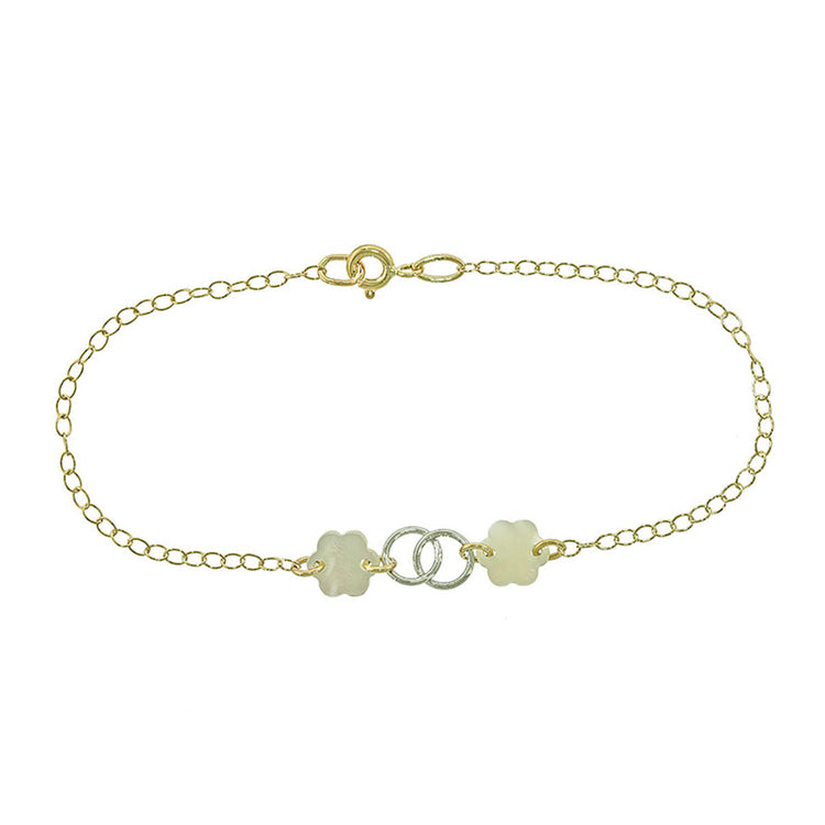 AV χρυσό βραχιόλι με σχέδιο λουλούδι από λευκό φίλντισι και αλυσίδα κρίκο-κρίκο