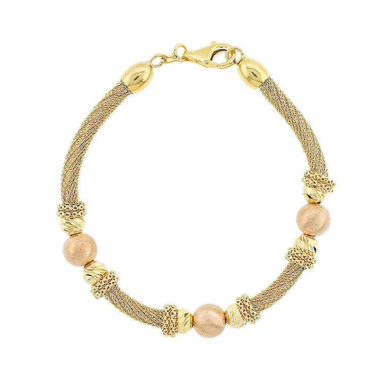 AV χρυσό βραχιόλι με σταθεσή χοντρή πλέξη και ροζ σαγρέ μπίλιες
