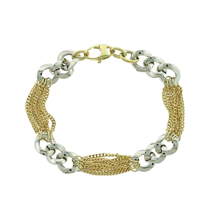 AV δίχρωμο γυναικείο βραχιόλι με τετραπλή αλυσίδα και κρίκους