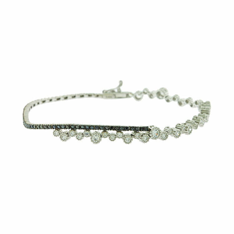 AV λευκόχρυση ριβιέρα με πέτρες ζιργκόν λευκού και μαύρου χρώματος και λουστρέ επιφάνεια