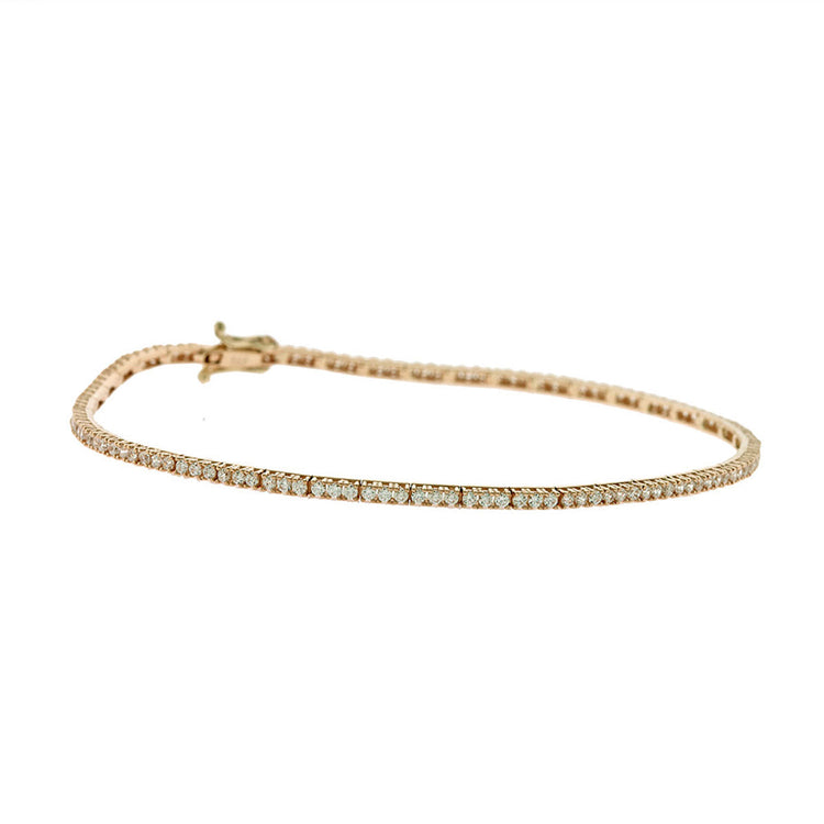 Ένα άκρως εντυπωσιακό γυναικείο βραχιόλι, ριβιέρα, κατασκευασμένο από ροζ-χρυσό μέταλλο 14 Καρατίων.