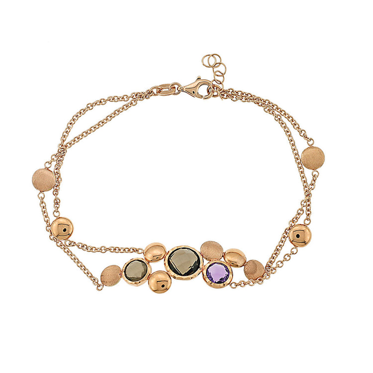 AV ροζ-χρυσό βραχιόλι με διπλή αλυσίδα και ορυκτές πέτρες
