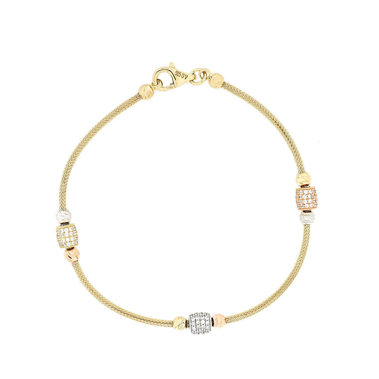 AV τρίχρωμο γυναικείο βραχιόλι με πέτρες ζιργκόν και διαμανταρισμένη τεχνική