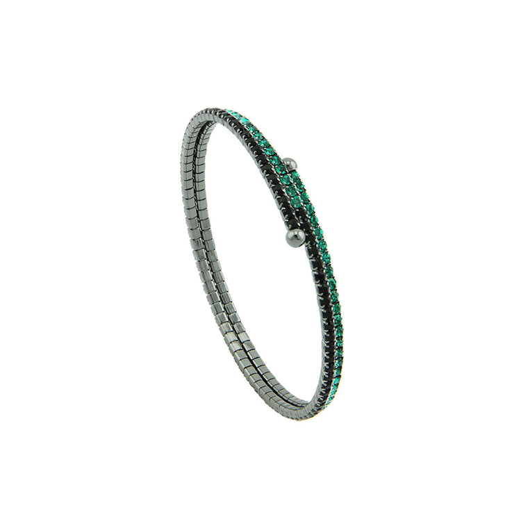 LOISIR γυναικείο ελαστικό βραχιόλι με μαύρα και πράσινακρύσταλλα