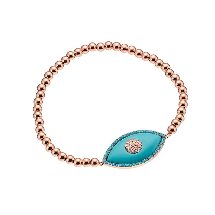 LOISIR γυναικείο ελαστικό βραχιόλι με ροζ χάντρες και ματάκι με λευκά ζιργκόν