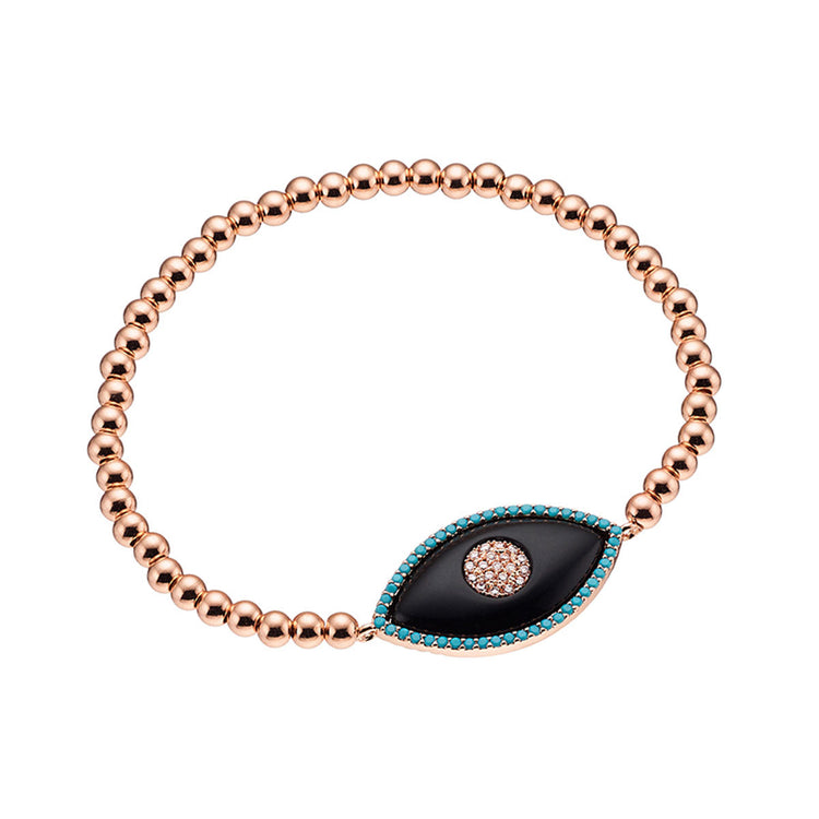 LOISIR γυναικείο ελαστικό βραχιόλι με ροζ χάντρες και ματάκι με λευκά ζιργκόν