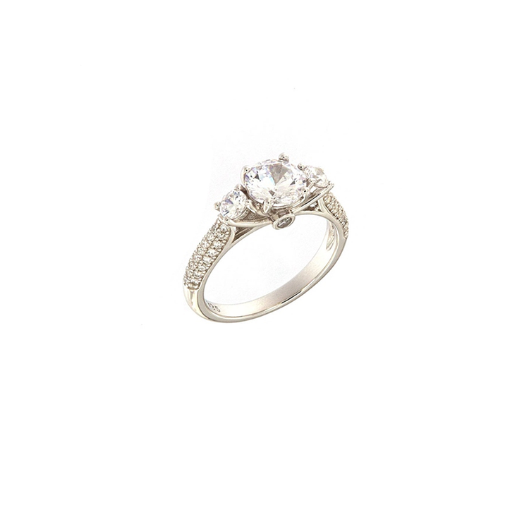 Η επιφάνεια του δαχτυλιδιού είναι λουστρέ και έχει ως κεντρικό στοιχείο του μια πέτρα ζιργκόν σε χρώμα λευκό. Επίσης, διαθέτει από 2 μικρότερες πέτρες ζιργκόν και τριπλή σειρά από ακόμη μικρότερες .