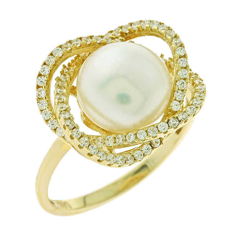 AV χρυσό δαχτυλίδι διακοσμημένο με μαργαριτάρι και πέτρες ζιργκόν