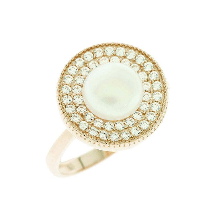 AV χρυσό δαχτυλίδι διακοσμημένο με μαργαριτάρι και πέτρες ζιργκόν