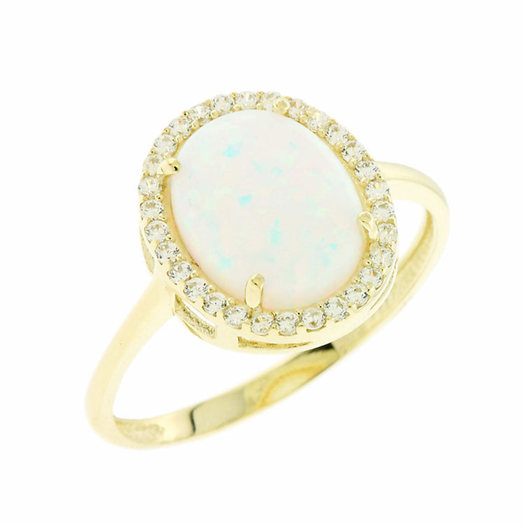 AV χρυσό δαχτυλίδι διακοσμημένο με πέτρα οπάλ και μικρότερες με ζιργκόν