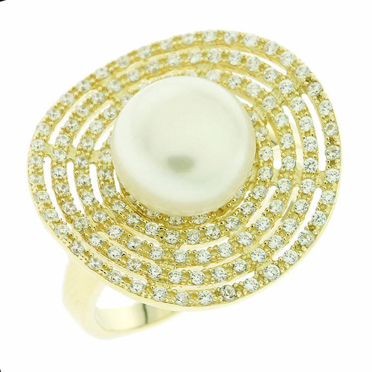 AV χρυσό δαχτυλίδι διακοσμημένο με πέτρες ζιργκόν και μαργαριτάρι