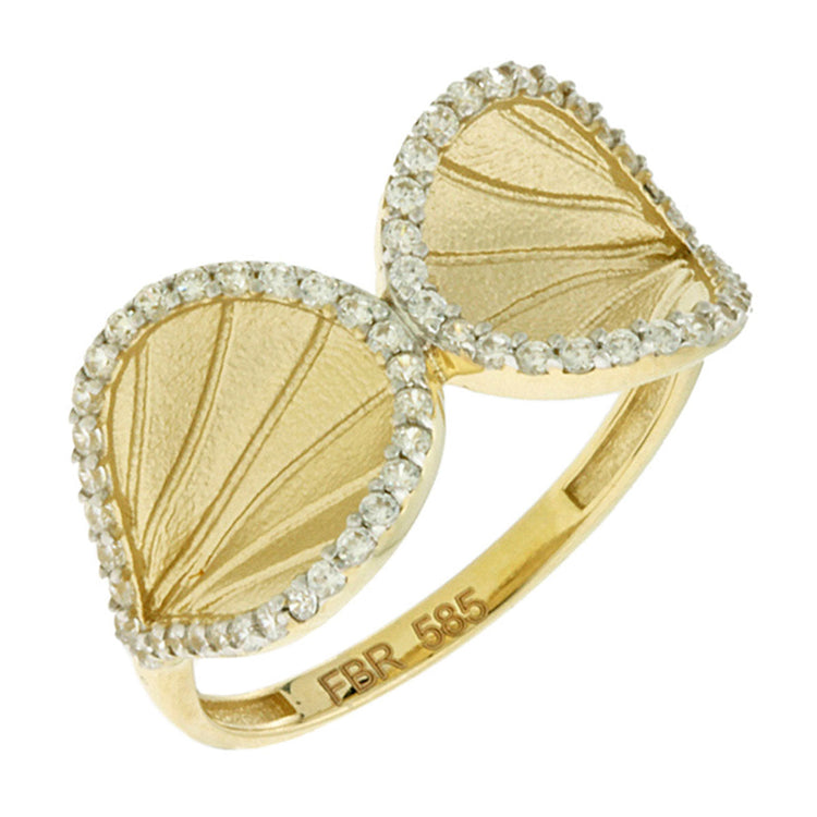 Ένα πανέμορφο και εντυπωσιακό δαχτυλίδι, κατασκευασμένο από χρυσό μέταλλο 14Κ, σε χρυσή απόχρωση και λουστρέ, ματ φινίρισμα.