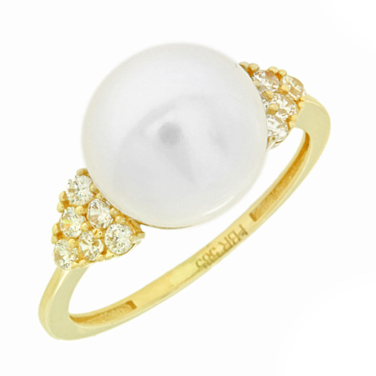 AV χρυσό δαχτυλίδι με μαργαριτάρι και διακοσμημένο με πέτρες ζιργκόν
