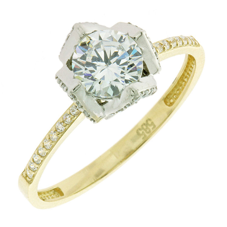 AV χρυσό, λευκόχρυσο μονόπετρο δαχτυλίδι διακοσμημένο με πέτρες ζιργκόν