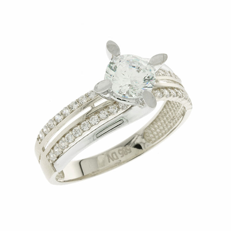 AV λευκόχρυσο μονόπετρο δαχτυλίδι διακοσμημένο με πέτρες ζιργκόν