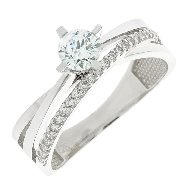 AV λευκόχρυσο μονόπετρο δαχτυλίδι διακοσμημένο με πέτρες ζιργκόν