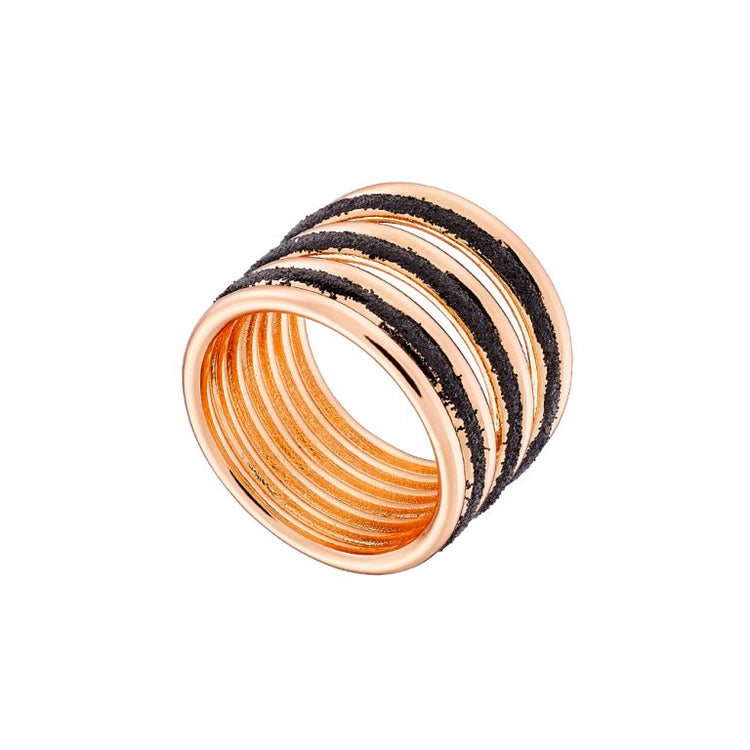 Ένα σαγηνευτικό γυναικείο δαχτυλίδι, κατασκευασμένο από μέταλλο σε ροζ χρυσό χρωματισμό και glitters στις σειρές.
