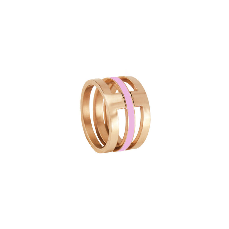 LOISIR γυναικείο δαχτυλίδι με διάτρητα σχέδια και ροζ σμάλτο
