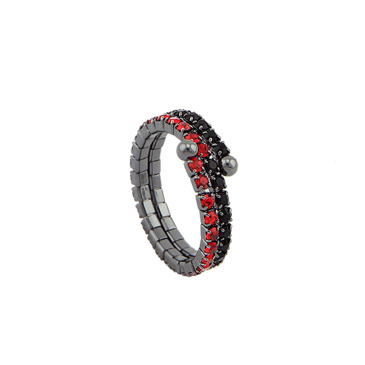 LOISIR γυναικείο δαχτυλίδι με δύο σειρές από μαύρα και κόκκινα κρύσταλλα