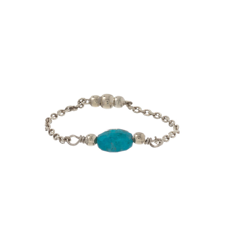 Ένα εξαιρετικό δαχτυλίδι με κεντρική πέτρα, αλυσίδα και ασημένιες σφαιρικές ράβδους, από την Alisia, κατασκευασμένο από ασήμι 925.