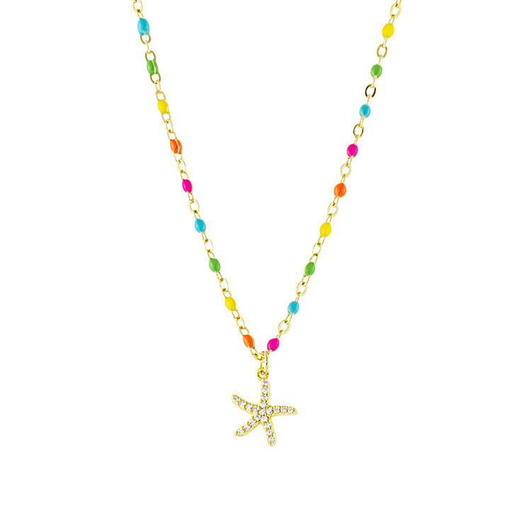 Κολιέ Doll μεταλλικό επίχρυσο με αλυσίδα πολύχρωμη και αστερία