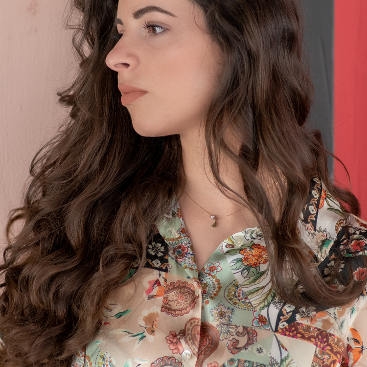 Η επιφάνεια του κοσμήματος είναι λουστρέ και διαμανταρισμένη με λεπτή αλυσίδα. Διακοσμείται από σχέδιο μαμά σε χρυσό μέταλλο και διαμανταρισμένη μπίλια σε λευκόχρυσο μέταλλο.