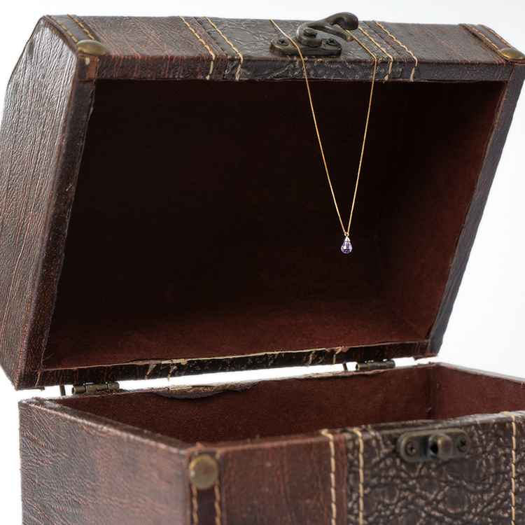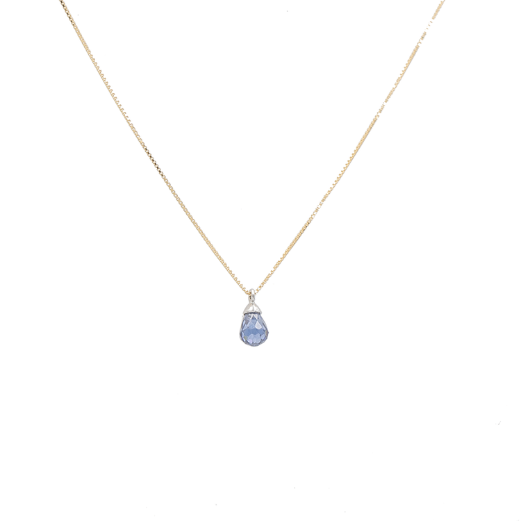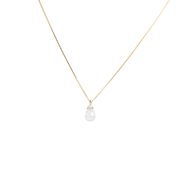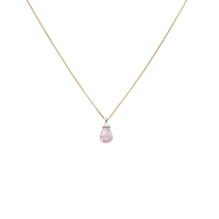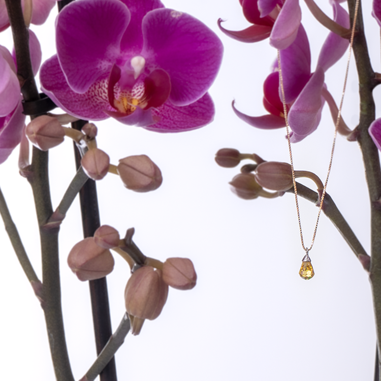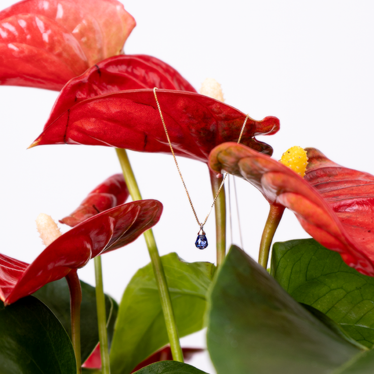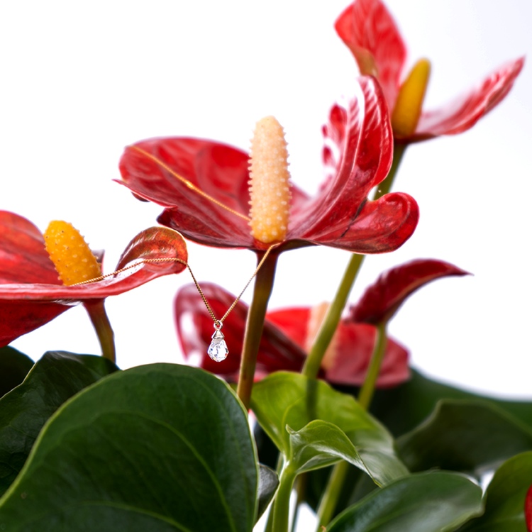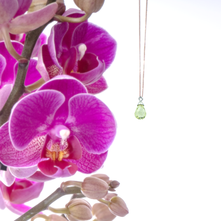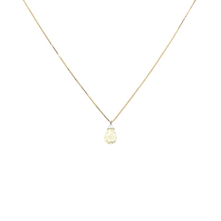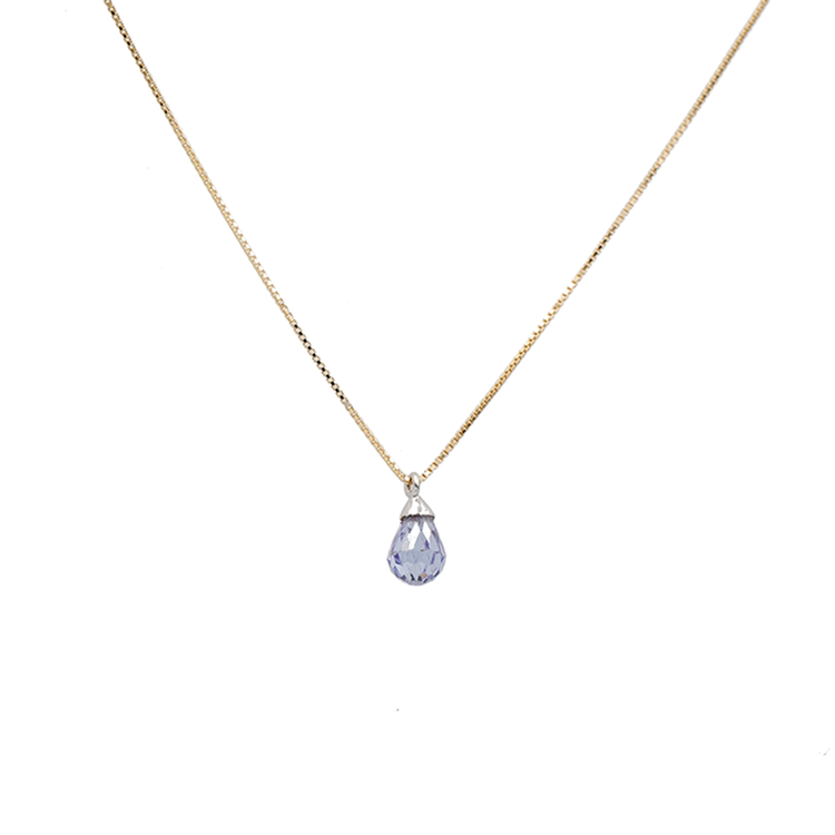 Η επιφάνεια του κοσμήματος είναι λουστρέ  με λεπτή αλυσίδα. Κεντρικό της στοιχείο μια ορυκτή πέτρα σε σχήμα δάκρυ.