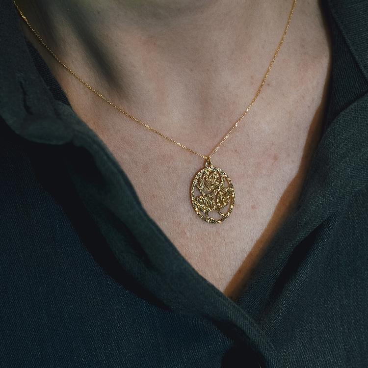 AV χρυσό γυναικείο κολιέ με δίατρητο σχέδιο σε σχήμα τριαντάφυλλο με διαμανταρισμένη επιφάνεια