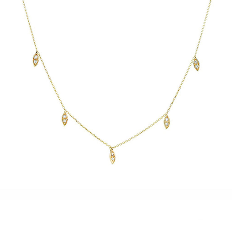 AV χρυσό γυναικείο κολιέ με κρεμαστά στοιχεία και πέτρες ζιργκόν