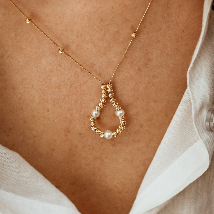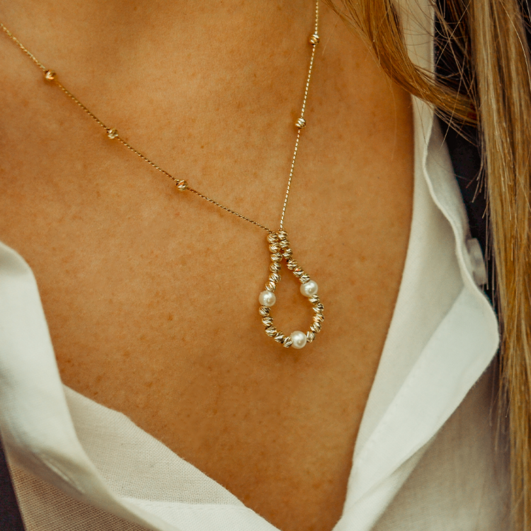 AV χρυσό γυναικείο κολιέ σε σχήμα σταγόνας με διαμανταρισμένες μπίλιες και μαργαριτάρια
