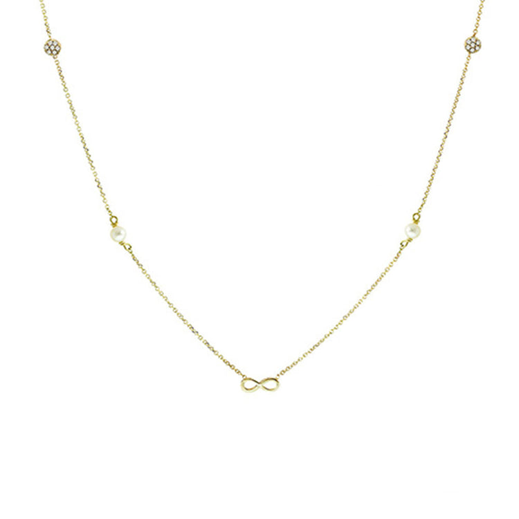 AV χρυσό κολιέ με άπειρο μαργαριτάρια και πέτρες ζιργκόν