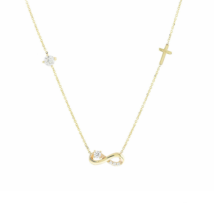 AV χρυσό κολιέ με άπειρο σταυρουδάκι και πέτρες ζιργκόν