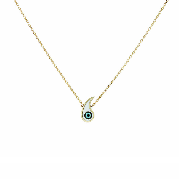 AV χρυσό κολιέ με ματάκι σε σχήμα δάκρυ από λευκό σμάλτο
