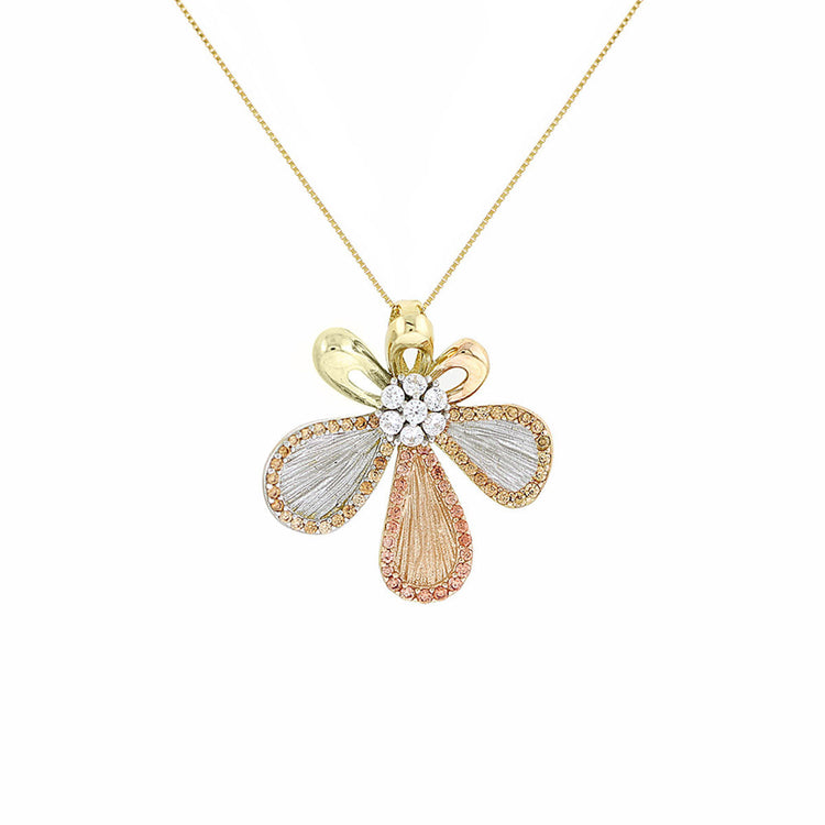 AV χρυσό κολιέ με τρίχρωμη μαργαρίτα και λευκές πέτρες ζιργκόν