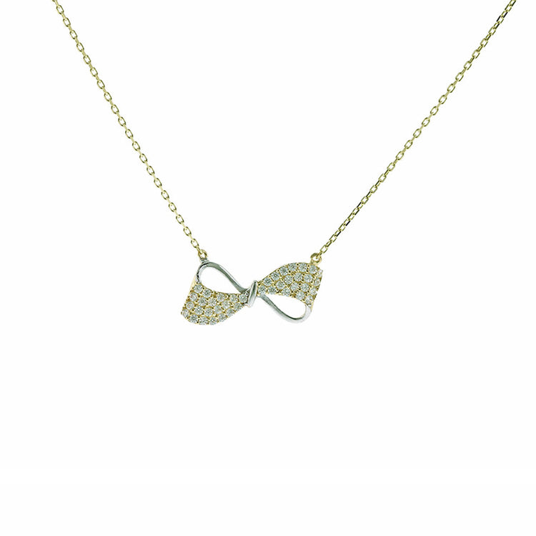 AV δίχρωμο κολιέ 14 Καρατίων με φιογκάκι και πέτρες ζιργκόν