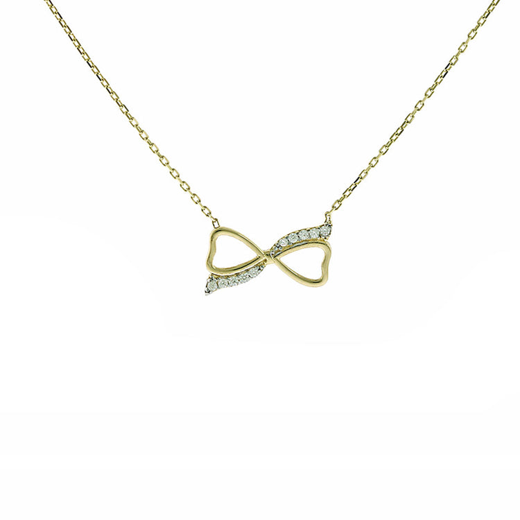 AV δίχρωμο κολιέ 14 Καρατίων με φιογκάκι και πέτρες ζιργκόν
