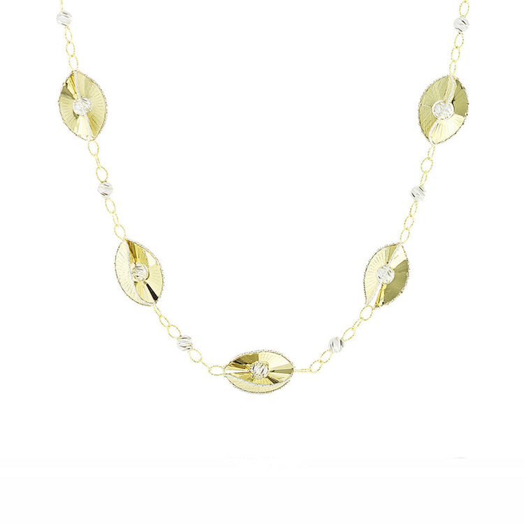 Ένα πολύ όμορφο και άκρως εντυπωσιακό γυναικείο κολιέ, δίχρωμο, κατασκευασμένο από  χρυσό και λευκόχρυσο μέταλλο 14 Καρατίων.