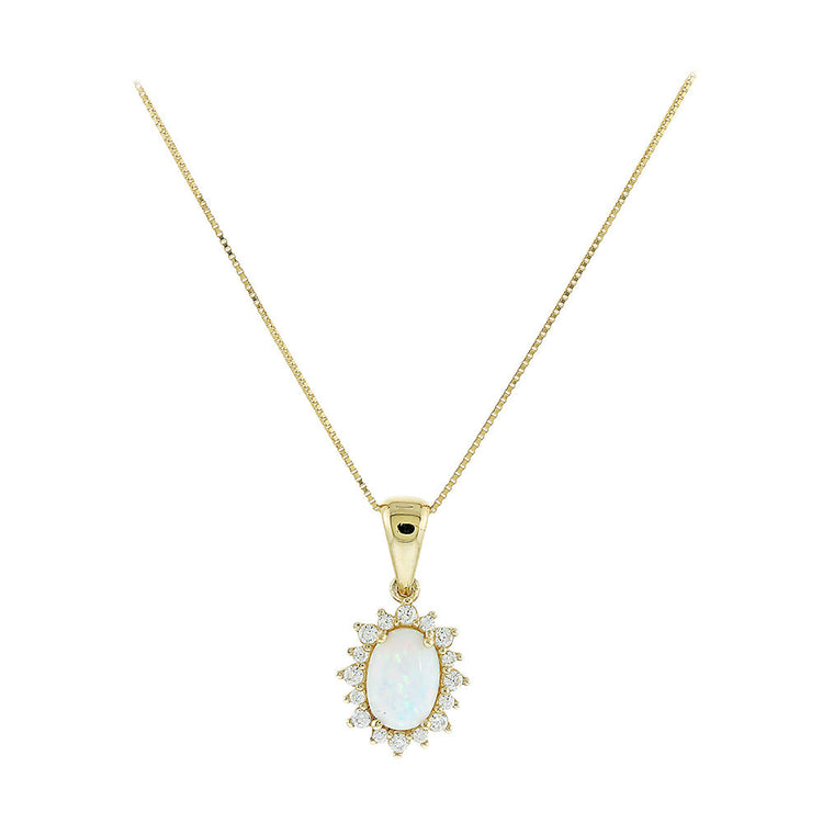 Το κολιέ είναι διακοσμημένο με υπέρλαμπρες πέτρες ζιργκόν λευκού χρώματος καθώς ιριδίζουσα λευκή πέτρα οπάλ.