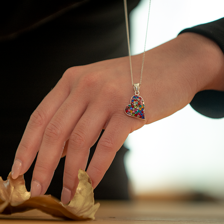 AV γυναικείο ασημένιο 925 κολιέ καρδιά με πολύχρωμα Swarovski