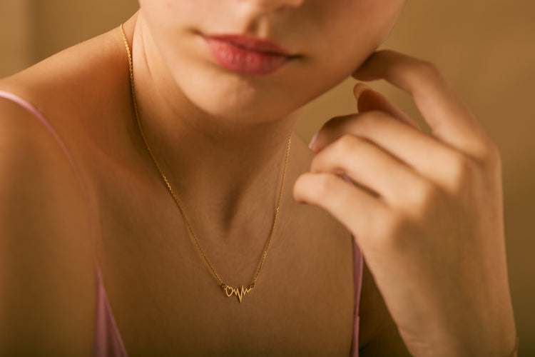 Διαθέτει λουστρέ επιφάνεια και λεπτή αλυσίδα. Κεντρικό του στοιχείο είναι καρδιογράφημα και καρδούλα.