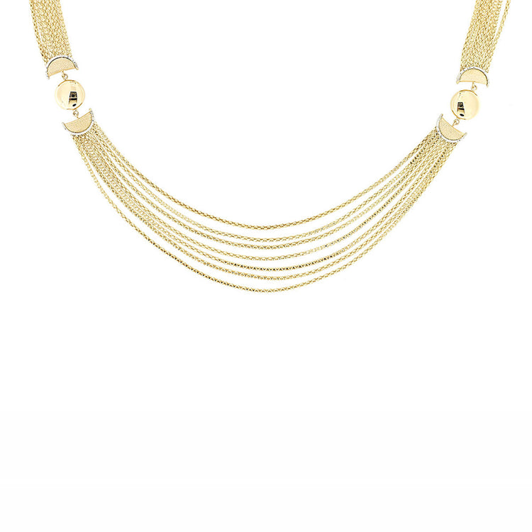 Ένα άκρως εντυπωσιακό και με αρκετά επίσημο χαρακτήρα γυναικείο περιδέραιο λαιμού, κατασκευασμένο από χρυσό μέταλλο 14 Καρατίων.