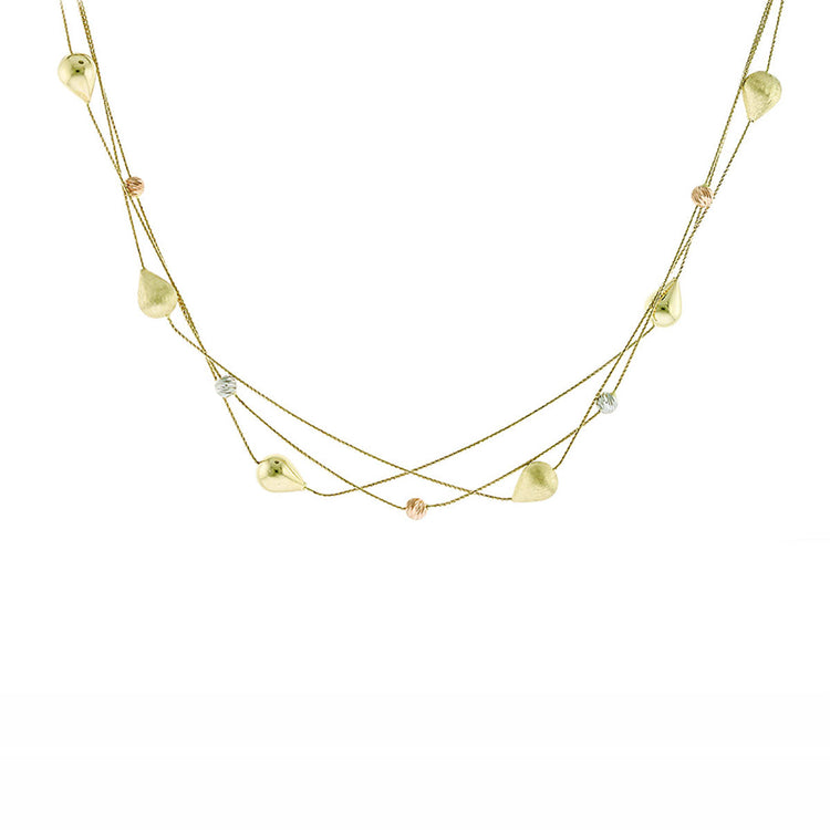 AV γυναικείο τριπλό τρίχρωμο κολιέ με διαμανταρισμένες μπίλιες