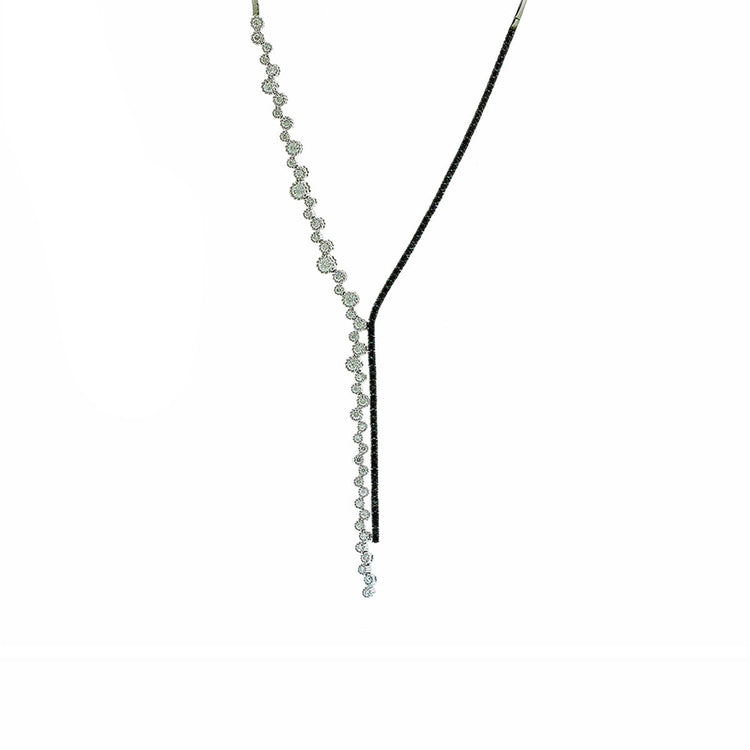 AV λευκόχρυσο περιδέραιο λαιμού με λευκές και μαύρες πέτρες ζιργκόν