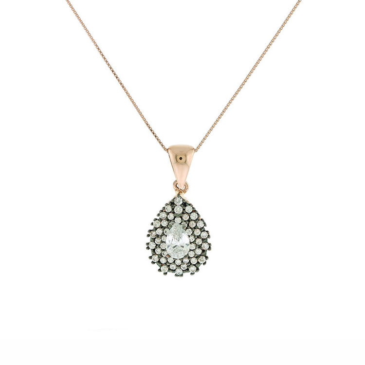 AV ροζ-χρυσό γυναικείο κολιέ σε σχήμα δάκρυ με μαύρο ρόδιο και πέτρες ζιργκόν