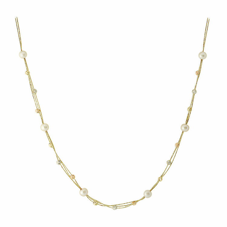 AV τριπλό χρυσό γυναικείο κολιέ με διαμανταρισμένες μπίλιες και μαργαριτάρι